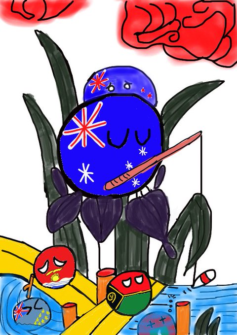 #ポーランドボール花札計画 #ポーランドボール 菊の青単。アルジェリア🇩🇿とナイジェリア🇳🇬。日本ならではのダジャレですね。二人はわかってないようですが。