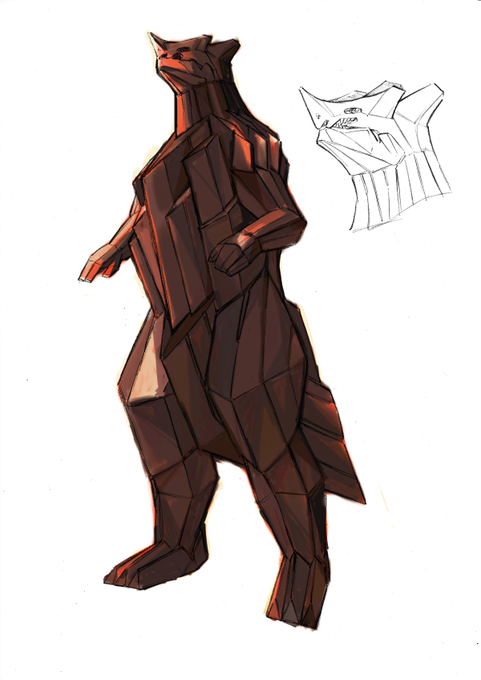 まだもうちょいあるんですがこれでラストで。 二枚目の縦レッドキングが描きたい!というだけでデザインしようとした思い切りの良さが技術的な点は置いといて個人的には一番笑えて好きです #オリジナル怪獣