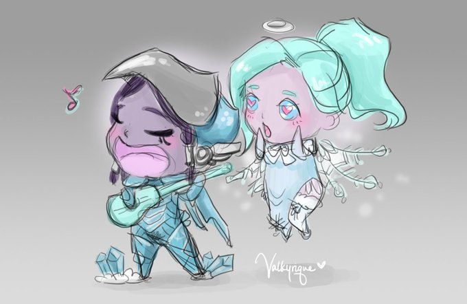 #overwatch #fanart :: winter #pharmercy #chibi :: a snowflake fairy falls in love with a winter spirit's music 💜💙💜💙 -- did i design a full winter mercy skin just for this doodle? yes, yes i did. designs coming soon! ❄️✨❄️✨