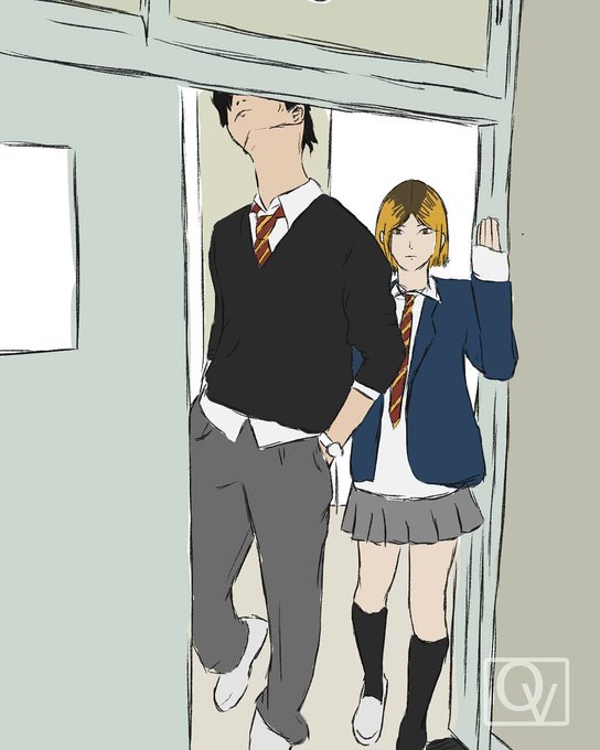made a cute fanart of #kuroo headbang and #kenma in a skirt. happy birthday lil pudding 🍮