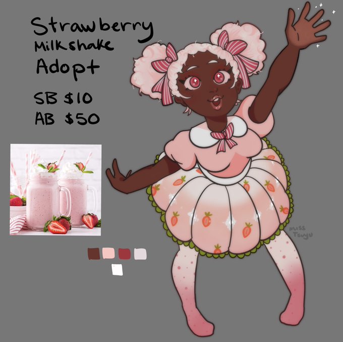 Strawberry milkshake adopt! 🎀🍓🍦 #adopt #adoptable #characterdesign
