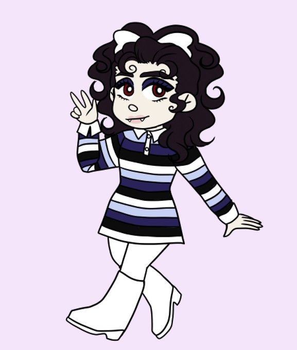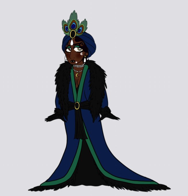 this beauty here is nanette (she/her), her favourite colours are emerald green and navy blue, and she used to be a fortune teller before she was a vampire!