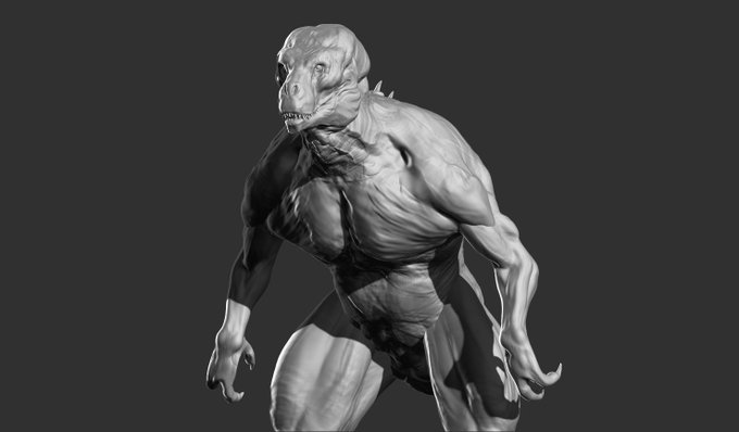 The small concept of jurassic park 4 from Carlos Huantes is bah have only one reference for the sculpt it was not easy #jurassicpark #jurassicworld #zbrush #hybrids #human