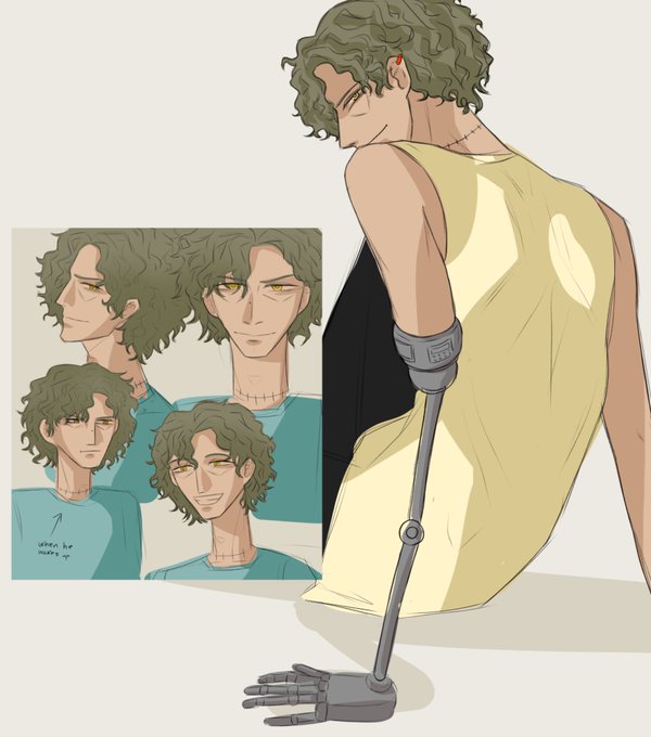 akuji dyed his hair green, it’s originally black. it’s also really dry and damaged because he was too impatient to bleach his hair periodically