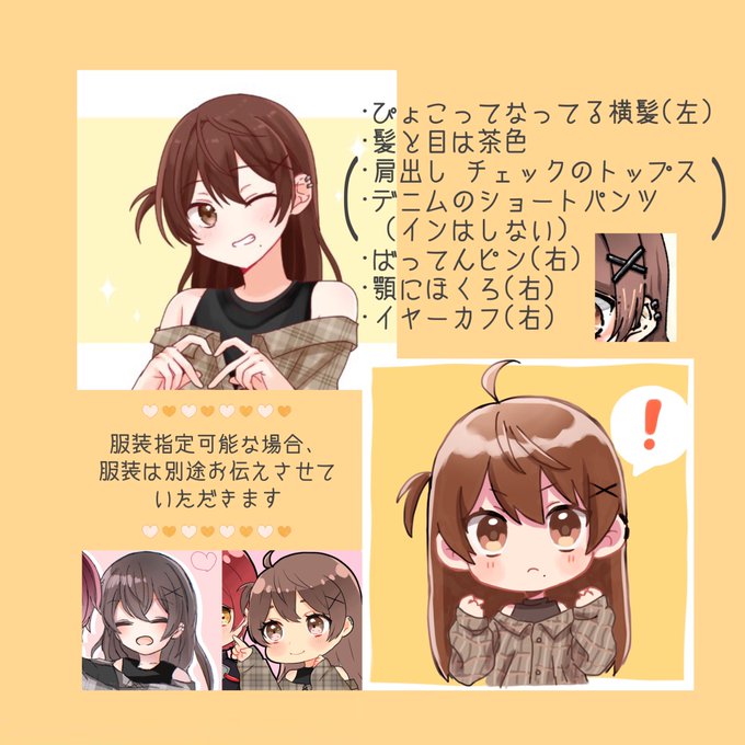 @Ebi__chan0 素敵な企画ありがとうございます!!! 参加失礼します💭 服装は一応2枚目でお願いしたいのですが、主様にぜひ描いていただきたいので服装はお任せでも大丈夫です🙌🏻