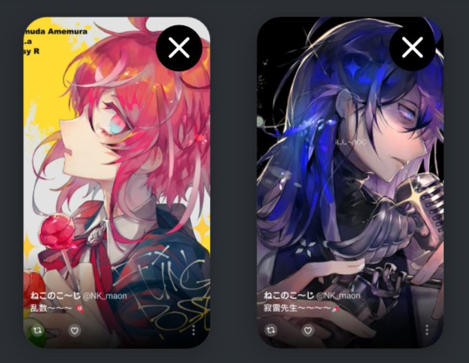 ヒプ垢のモーメント弄ってたんだけど、意図せず横顔の二人が並んでてなんか対称的で一人で気に入ってた🍬💉