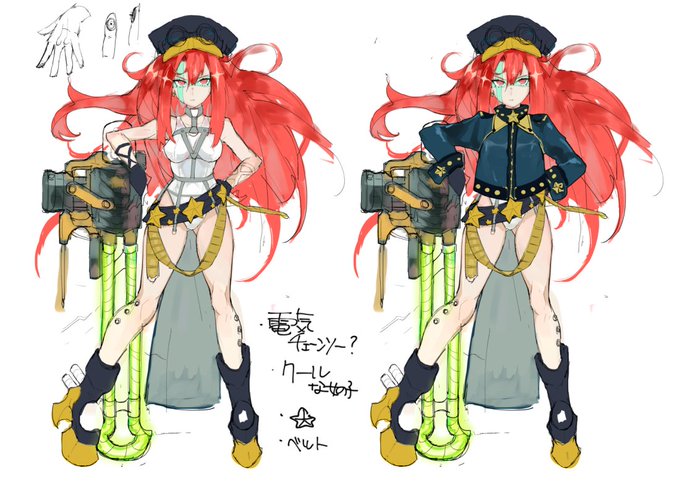 褐色の子は5年前に作ってよく描いてた看板娘のリメイクなんだけど、前の方がデザインカッコ良かったなあ…って思った。あと純粋に5年前の絵の方が味があるな??_(┐「ε:)_
