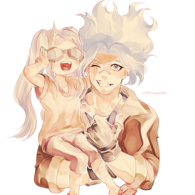 Hc that these two probably have a lotta interactions bc of how Mirio practically lives in Eri's dorm room now. I imagine them entering the teachers dorms common rooms like this and Tamaki and Aizawa immediately want to die. https://t.co/HfcS9aiG9y