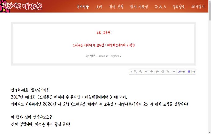 기다리고 기다리시던 2020년 제 2회 <드래곤볼 베지터 수 교류전 : 제일예쁜베지터 2> 의 개최 소식을 전합니다!