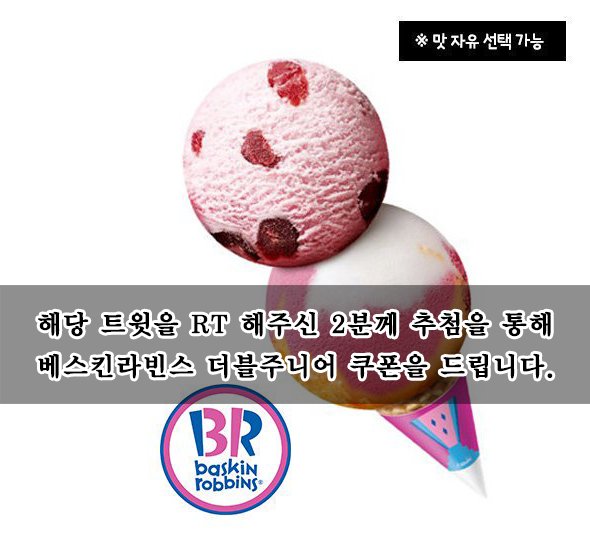 *RT해주신 2분께 추첨을통해 베스킨라빈스 쿠폰을!