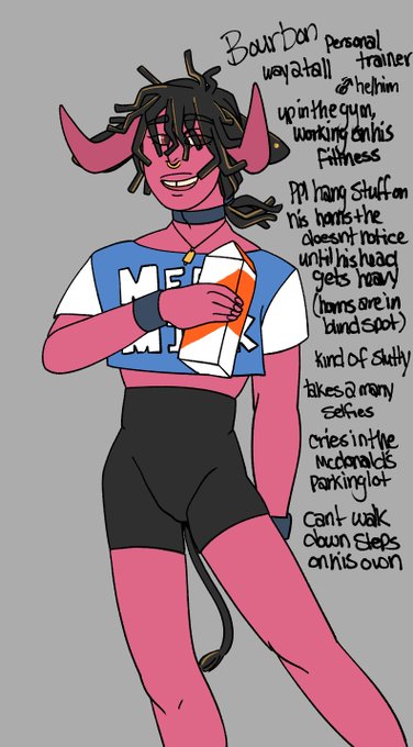 doodles of my oc bourbon from last night silliness with @arescased and @edgyplatypus hes a pink highland cow with more instagram followers than u #ocart #originalcharacter
