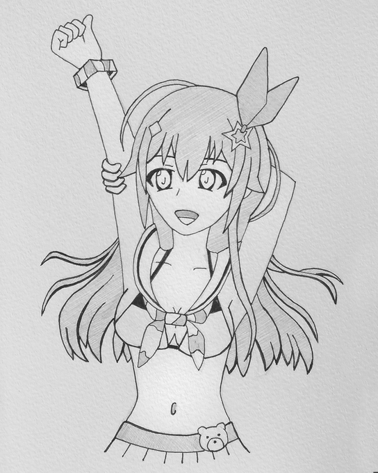 お絵描き11枚目! 今年も見たいなホロサイブサマーの気持ちで 水着そらちゃん🐻 全身とか背景も描いてみたいから 大きいスケッチブック買おう~🖊 #soraArt