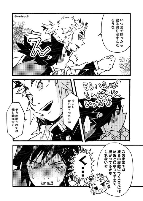 🔥🌊夫婦ネタ 昨日の投下漫画で大きな🔥さんが言ってたヘラ屋敷に向かう途中朝チュンにも満たない速度でめおとになって子を授かった場合の妄想漫画、二枚+一枚絵です