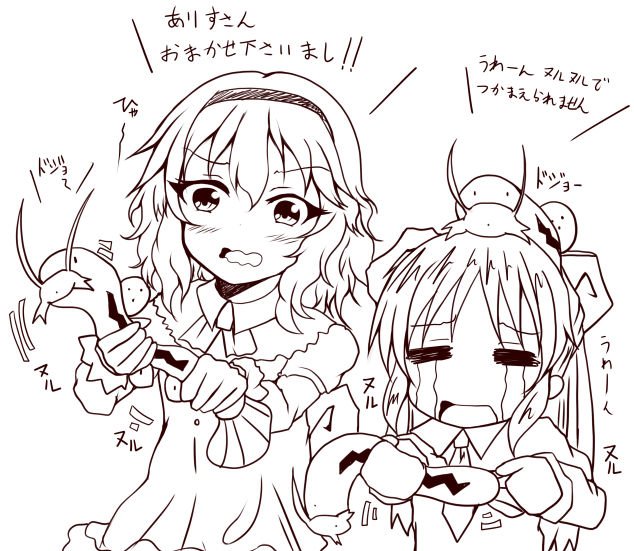 櫻井桃華と橘ありすの丑の日に初のウナ…ギ…それドジョッチ掴みだよ二人とも!! #らくがき