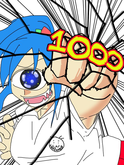 お題「1000」 おめでとうの1000万パワーパンチ #仮単眼版深夜の真剣お絵描き60分一本勝負