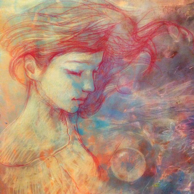 月夜霧 Pencil on paper watercolor