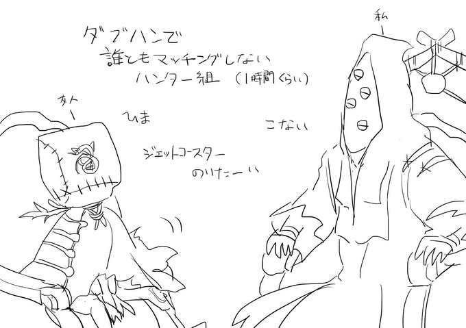 別ジャンルの絵で申し訳ないのですが、友人とダブハンで遊びたいのにサバイバーとマッチングしない落書きとロビーくん可愛いなあという落書き(第五人格)