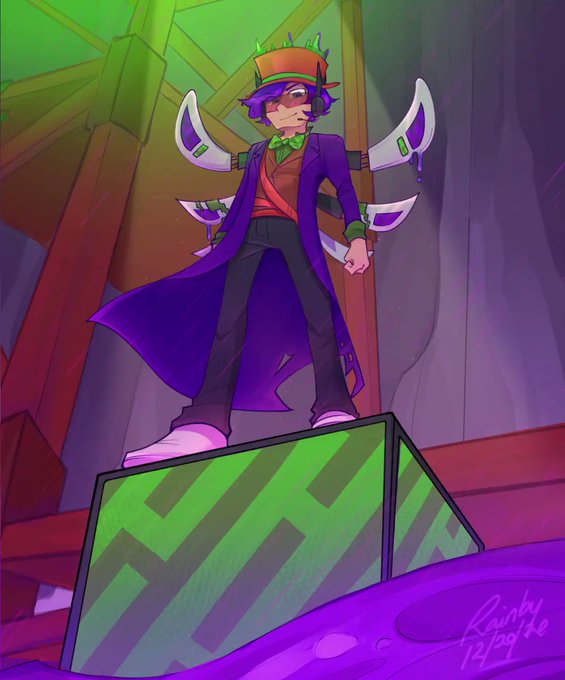 heres my first design of him for reference. but id say this is MAYBE around the time you make it to iron armor so, a few years after the beginning