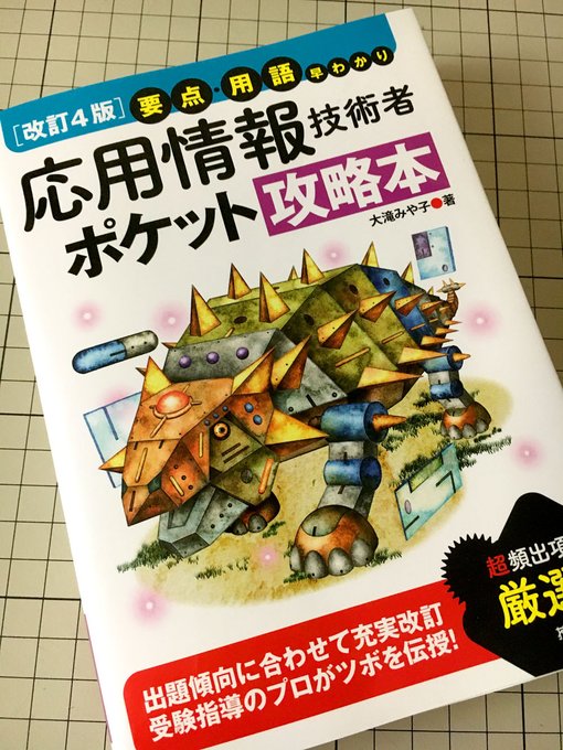 本日、見本誌をお送りいただきました。『応用情報技術者・ポケット攻略本』の表紙イラストの制作をしました。デザインは、NONdesign小島トシノブ氏です。アンキロサウルスをモチーフにした機械生命体です。#イラスト #書籍 #表紙 #恐竜 #古代生物 #応用情報技術者