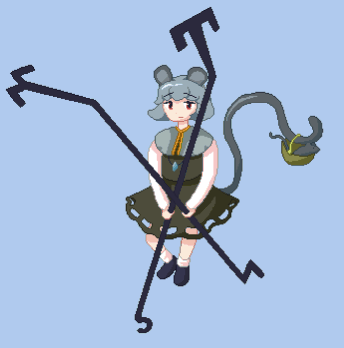 nazrin pixel art! i love this lil mouse. it took me so long to realize that the ends of her dousing rods were the four cardinal directions