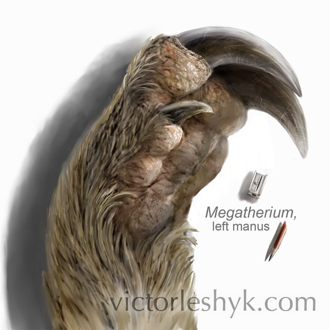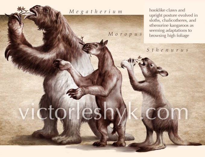 #SciArtTweetstorm #paleoart: my #Sciart portrait of a convergent evolution theme in hook-handed "high browsing" extinct mammals