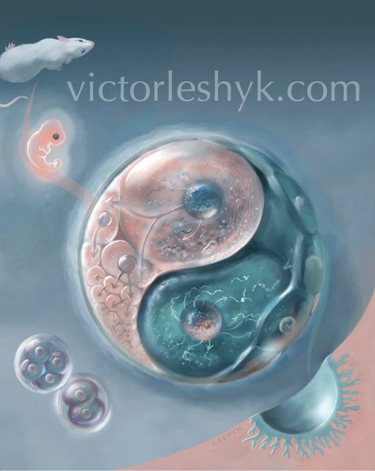guide to my previous #Sciart post: cell lineages that become Fetus vs. Membranes (placenta, etc) split in the very first 2 cells of embryo