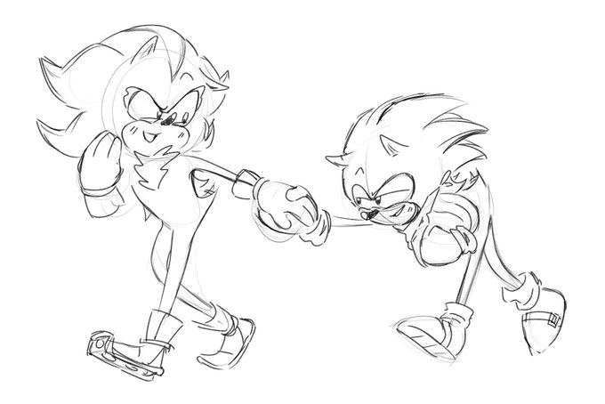 drawing sonadow + silver, the hedgehogs are not straight! good for them! good for them