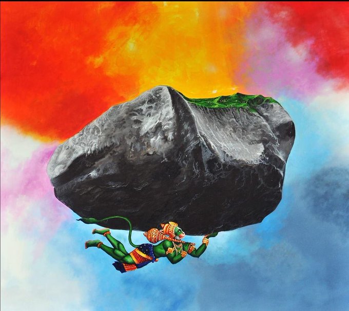 @sakshijoshii #Lakshmana is badly wounded Hanuman was called upon to fetch a herb from the mount Dronagiri Hanuman could not identify the herb and lifted the whole mountain and brought it to the battlefield