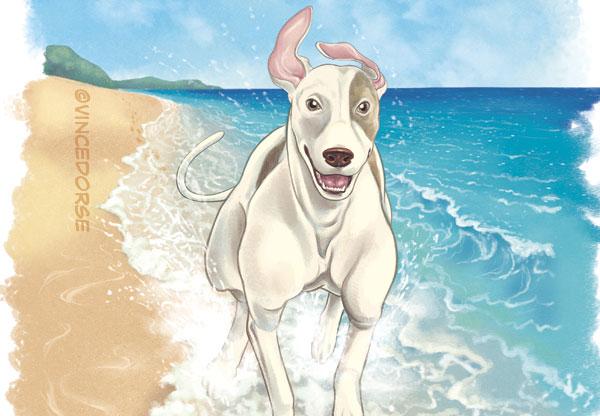 Tonight's job is to draw a dog running in the surf. A few more tweaks and it's break time.