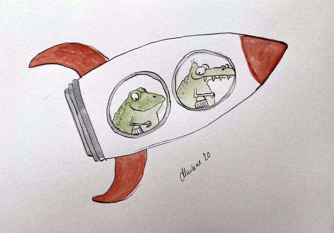 Harald Schlagerfeldt and Elliot takes a weekend trip out in space to drink pan galactic gargle blasters. Happy weekend tweephearts #rocket #inktober2020 #Inktober #InktoberDay16 #InkDrawing