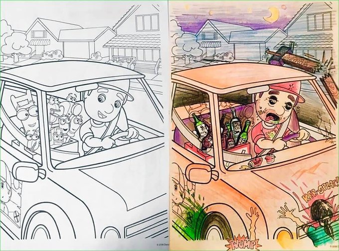 Esto es lo que ocurre cuando dejamos a un adulto colorear libros para niños 🤣🤣🤣 (Si eres un ofendidito ni te molestes en entrar!) https://t.co/5ZMz7c1VJ0 vía @oldskull #coloringbookcorruptions #creativo #creatividad #adulto #libro #colorear