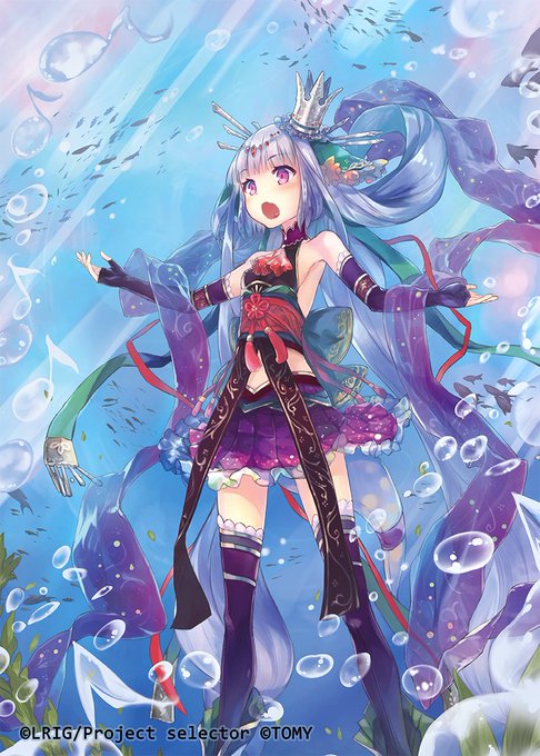 本日発売のWIXOSS構築済みデッキ ブルーコンフレーションで幻水姫グレホザメと幻水ハイギョ、ブースター19弾 アンソルブドセレクターで羅菌ハクセンを描かせて頂きました! #WIXOSS