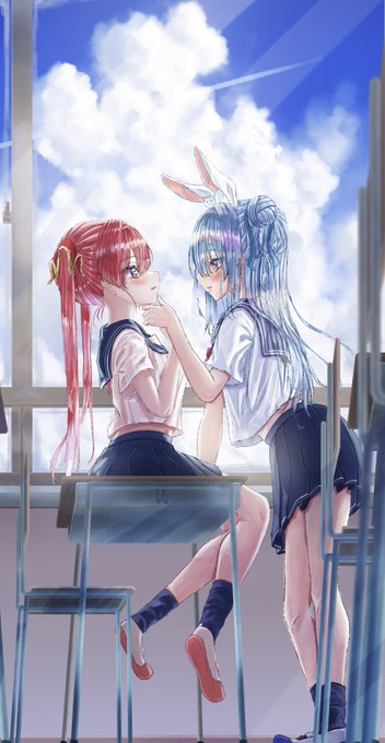 ぺこマリ18:覗き見 マリン🏴☠️「ぺこら…?」 ぺこら👯♀️「じっとするぺこ」 #マリンのお宝 #ぺこらーと