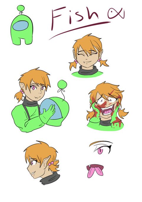 In other news, here’s a new OC I made. Her name is Fish and she’s an Among Us OC. I’m still working on her personality, but I got her deign down.