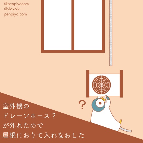 エアコン嬉しいペンギンと、 二日後室外機のホース外れてたから 屋根に降りて直すペンギン。 #エアコン #イラスト #ペンギン #illustration
