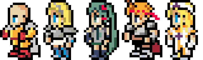 ドラクエ主人公一覧出来ました。3♀,7,8,9,11分を新規作成です。 並べてみると鎧着てるの1だけですね。 #ドラゴンクエスト #ドット絵