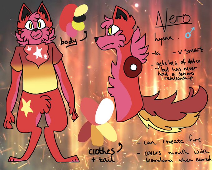 @cole_owo_bull @SpriteFox Thanks for the chance, Sexuality: gay, gender: male, his favourite colour is red, Country Scotland