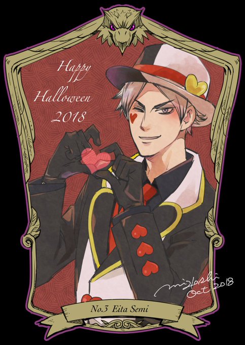 せっかくなので元絵達紹介✨ 🍎→若利くん ♥️→瀬見 🎩→獅音 🐙→覚ちゃん