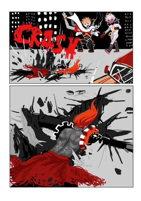 (baku holding out his arms is just my fav page. it slows down the pacing a bit at the halfway point of the comic. also the comedy when he catches the villain and not his boyfriend xD)