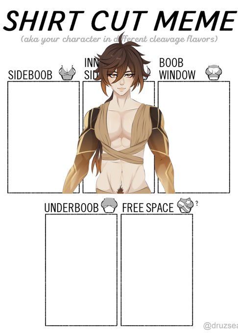 Votes were in for Morax and femme Childe ⚡️ practicing rendering as a bonus w the shirt cut meme #zhonglixchilde #boobmeme