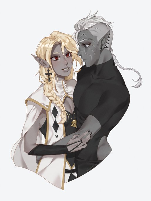 sorry for giving absolutely no context to this tweet but after 10 months (irl time) my dnd ship was able to meet again. eloy and volk talked. TALKED. and hes a monster now. my dm be like: im gonna give u everything u want. you will look at them (volk is outdated now but w/e!!!)