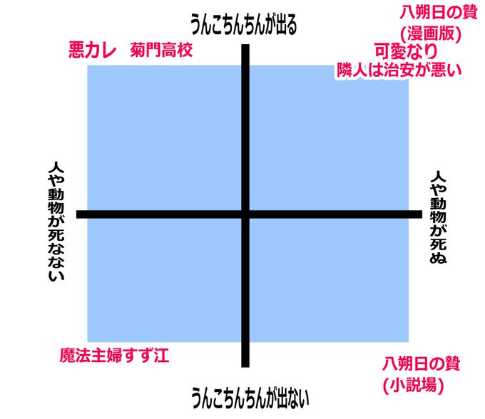 他にはㄘ◯ㄘんが取れる悪役令嬢漫画と、う◯こを投げて怪異を退治する因習村漫画を描いています。
