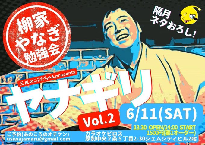 7/2(土)は桂竹千代さん落語独演会「ピロス寄席」第二回を新札幌カラオケピロスで開催。落語DE古事記も大好評。昨年は第76回文化庁芸術祭の大衆芸能部門新人賞を受賞した桂竹千代さん。新札幌でプロの落語が聴ける機会です。お申し込みはあのころのオチケンさんDMまで。Check It Out!