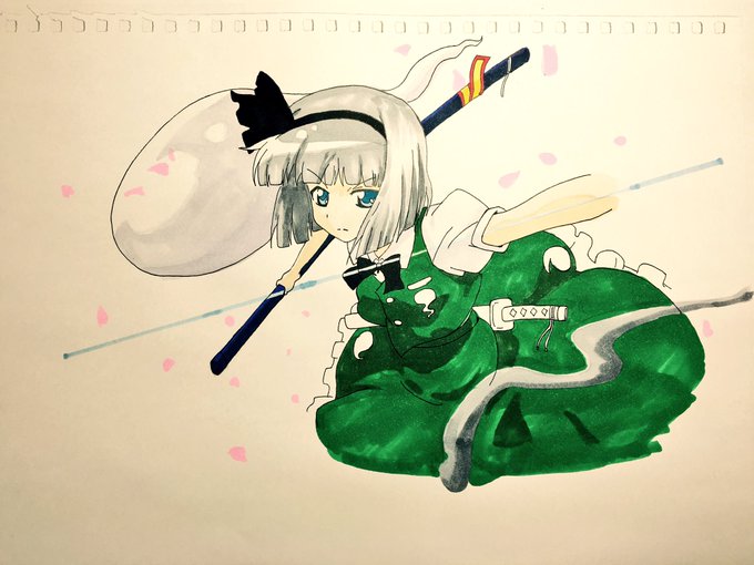 妖夢を描いてみたみょん(๑•﹏•)#模写