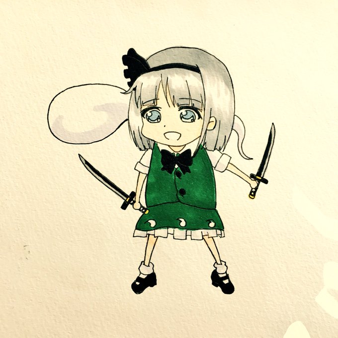 妖夢を描いてみたみょん(* • ω • )b