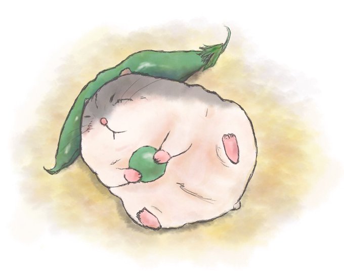 スナップエンドウを枕にするハムスター