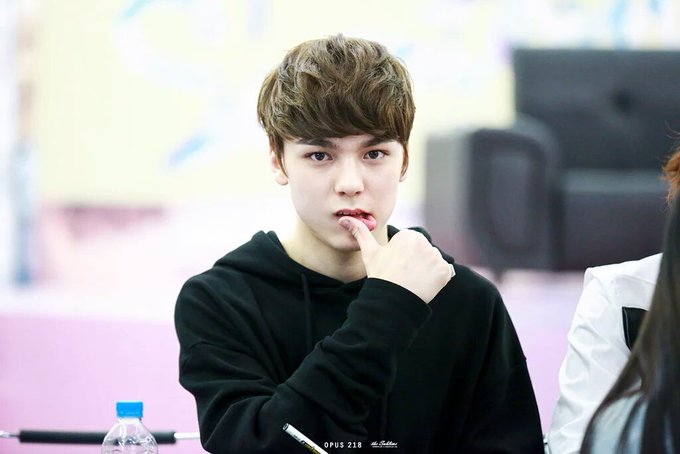 [FA] @pledis_17 Vernon~ focus on ma lips ♥👄 아아 너무 잘생긴 ㅠㅠ💘 (ref. @opus_218 감사어~ 멋진 사진 💘)