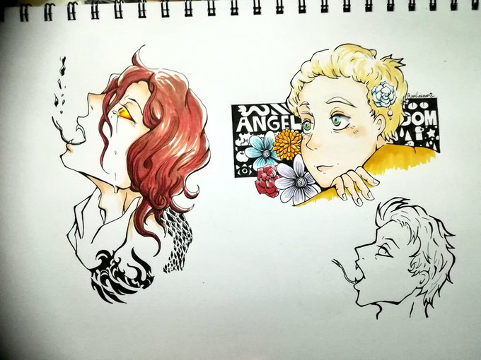 いまほんとにこの時間寝落ちてるか筆が乗らなくてぼーっとTL見てるかになってるので、グオメ絵描きかけも含めて再掲。描きたい気持ちはあるんだけどな…体力とMPが追い付かない感じ。 #GoodOmens #GoodOmensFanArt