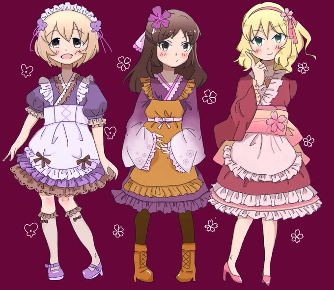 #メイドの日 といえば太古の昔の絵だけど和メイドちゃんがいました〜☕すみれココアちゃんあおいコーヒーちゃんさくらミルクティちゃん