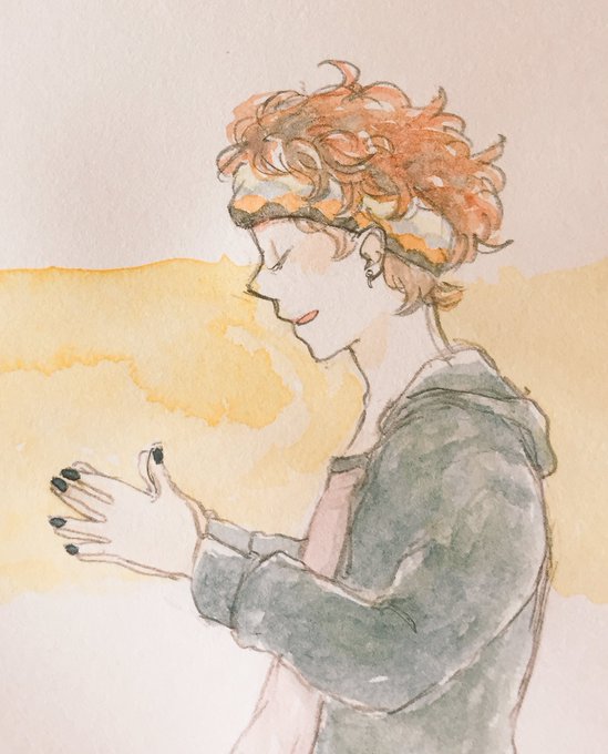 今日の夜は従姉妹が遊びに来ます\(^o^)/頼まれてた絵が完成したからホッとしてる。喜んでくれるといいな、、コピック全部捨てたから水彩しかないのが苦しかったわ、、!!